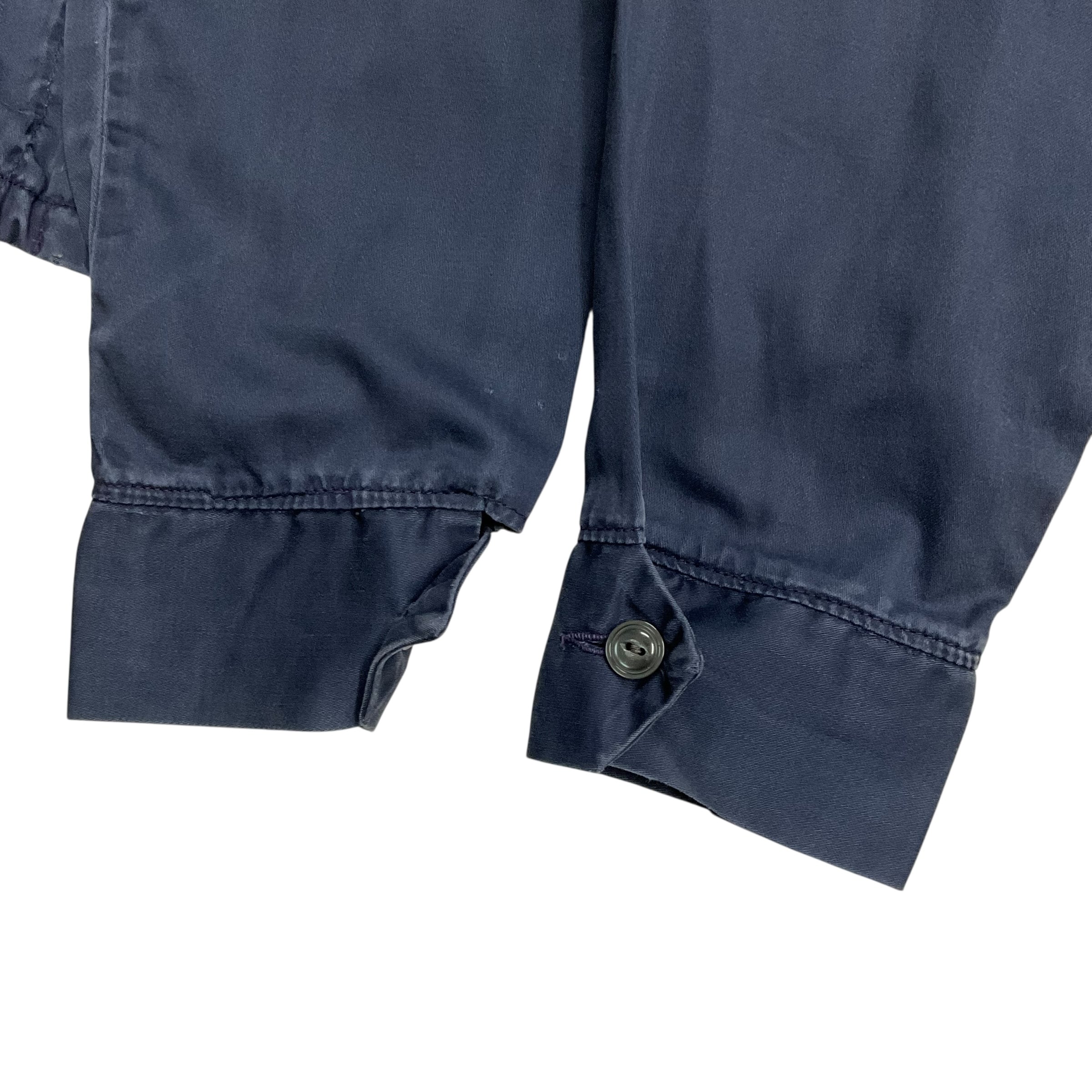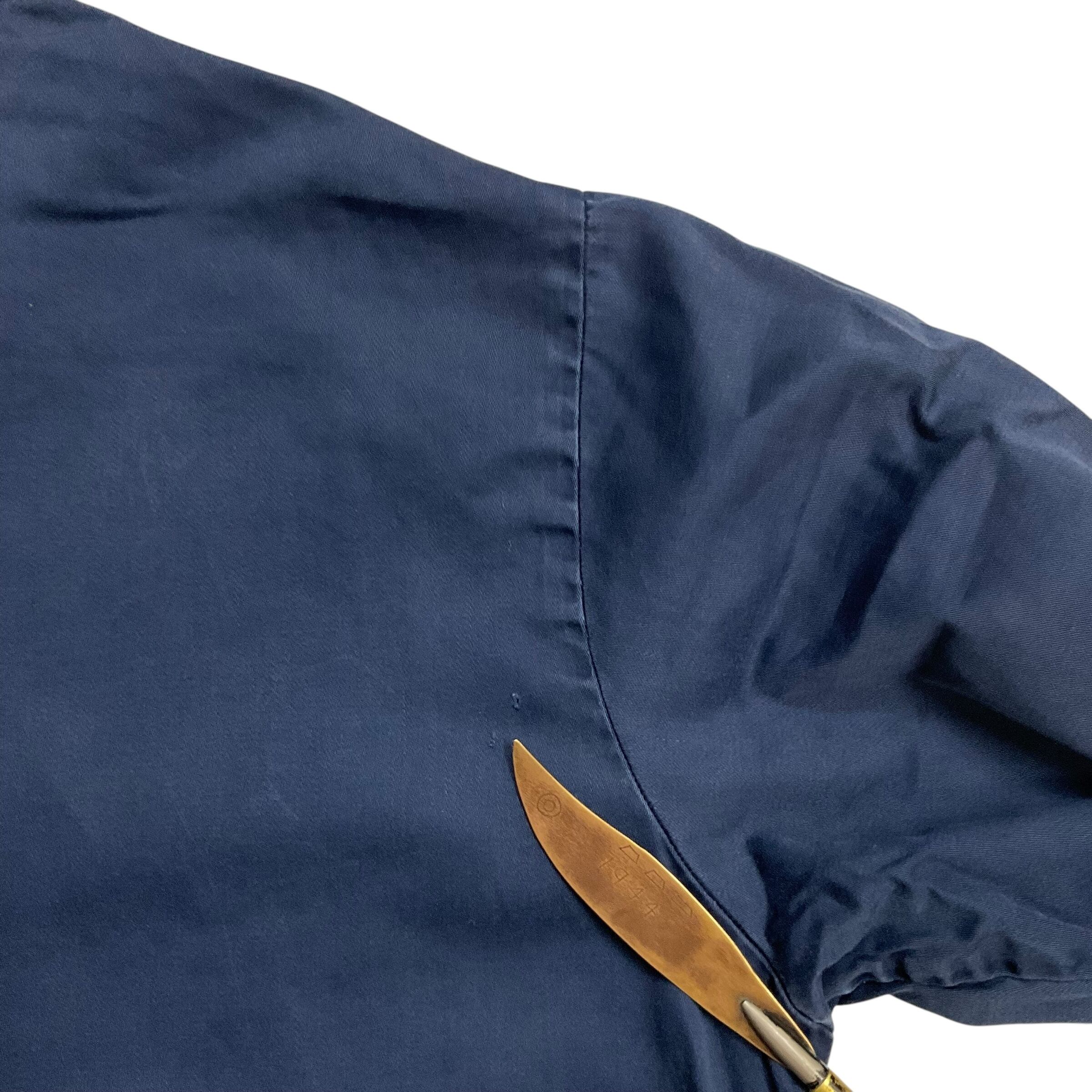 フェードしたネイビーボディーのドックイヤージャケットに