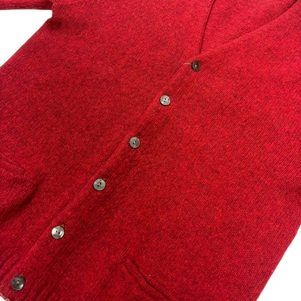 深い赤、色気ムンムンのモヘア混紡カーディガン。
