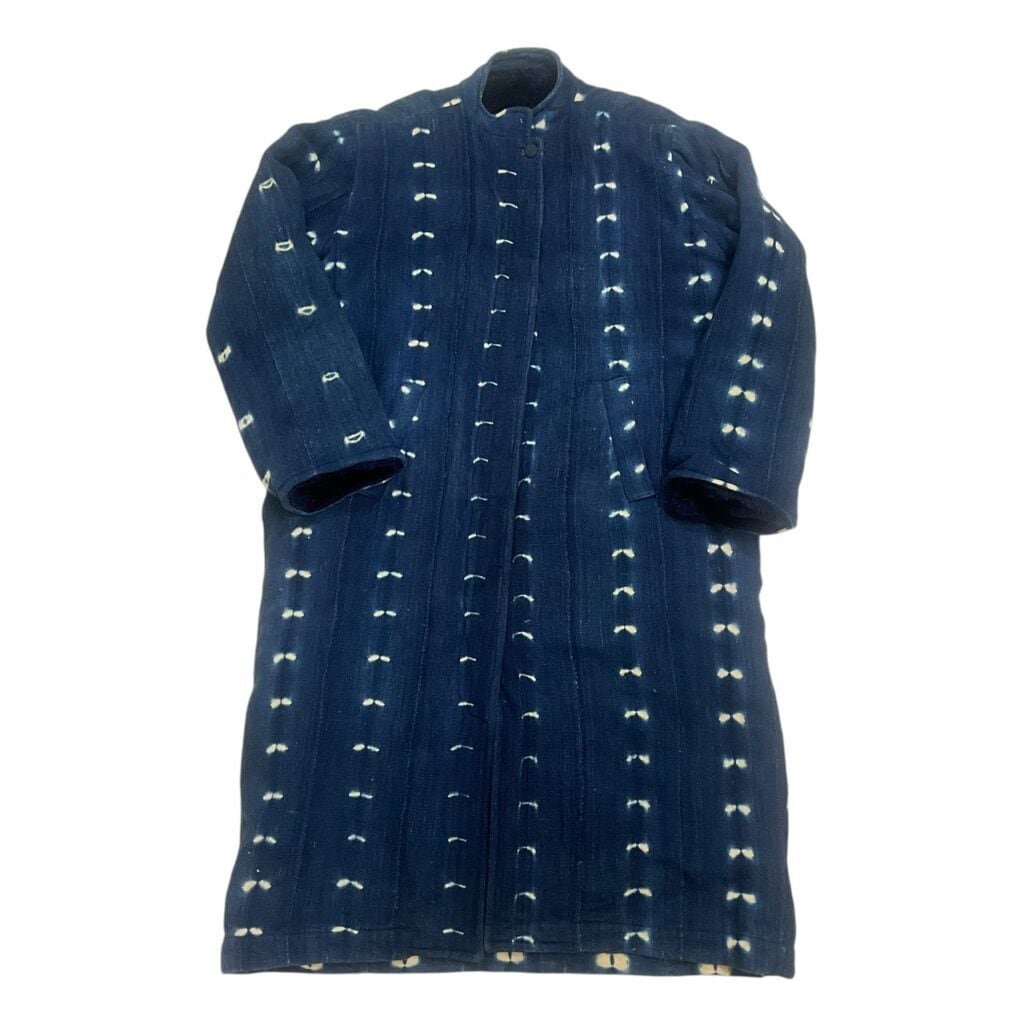 インディゴ染めのアフリカ布が使われたコート