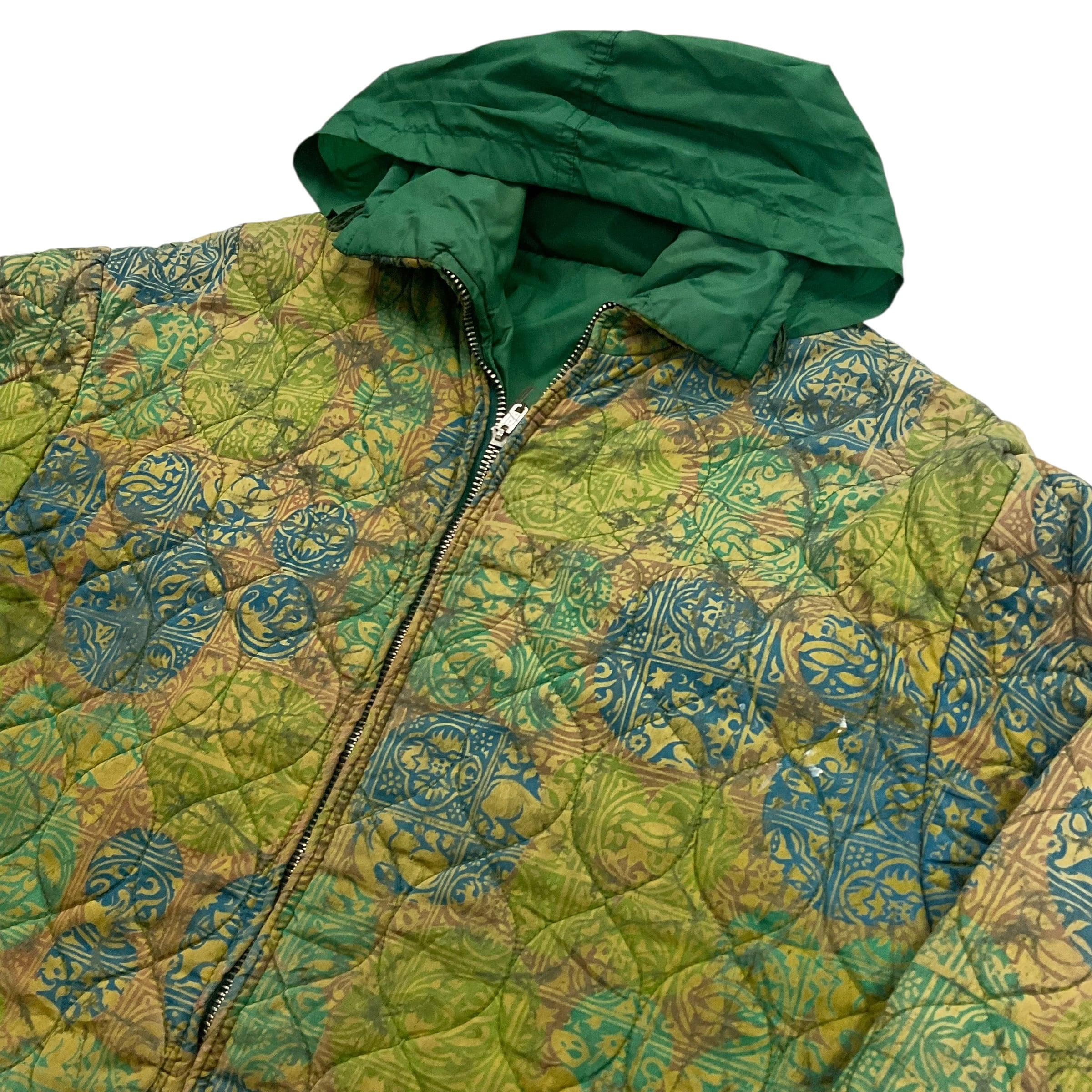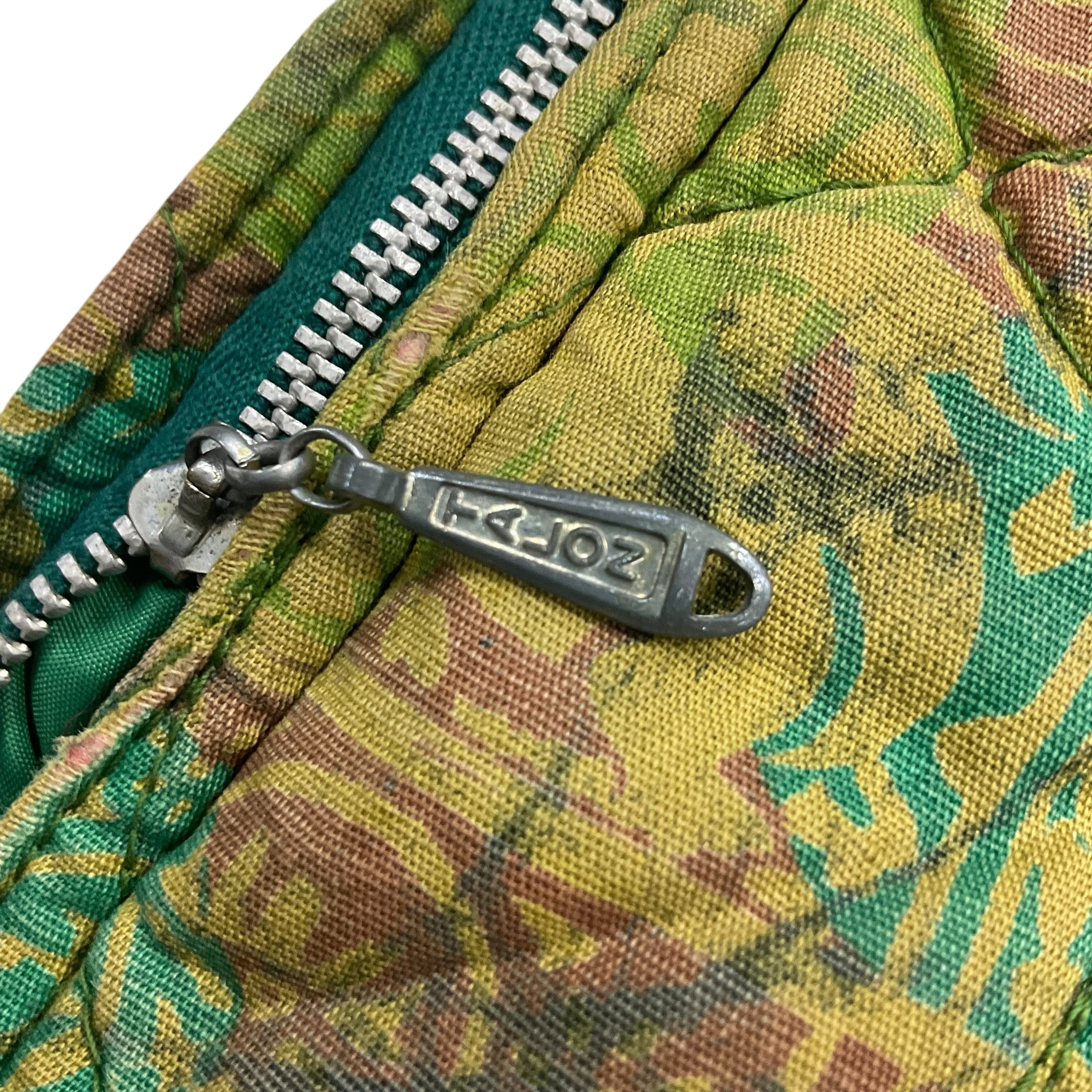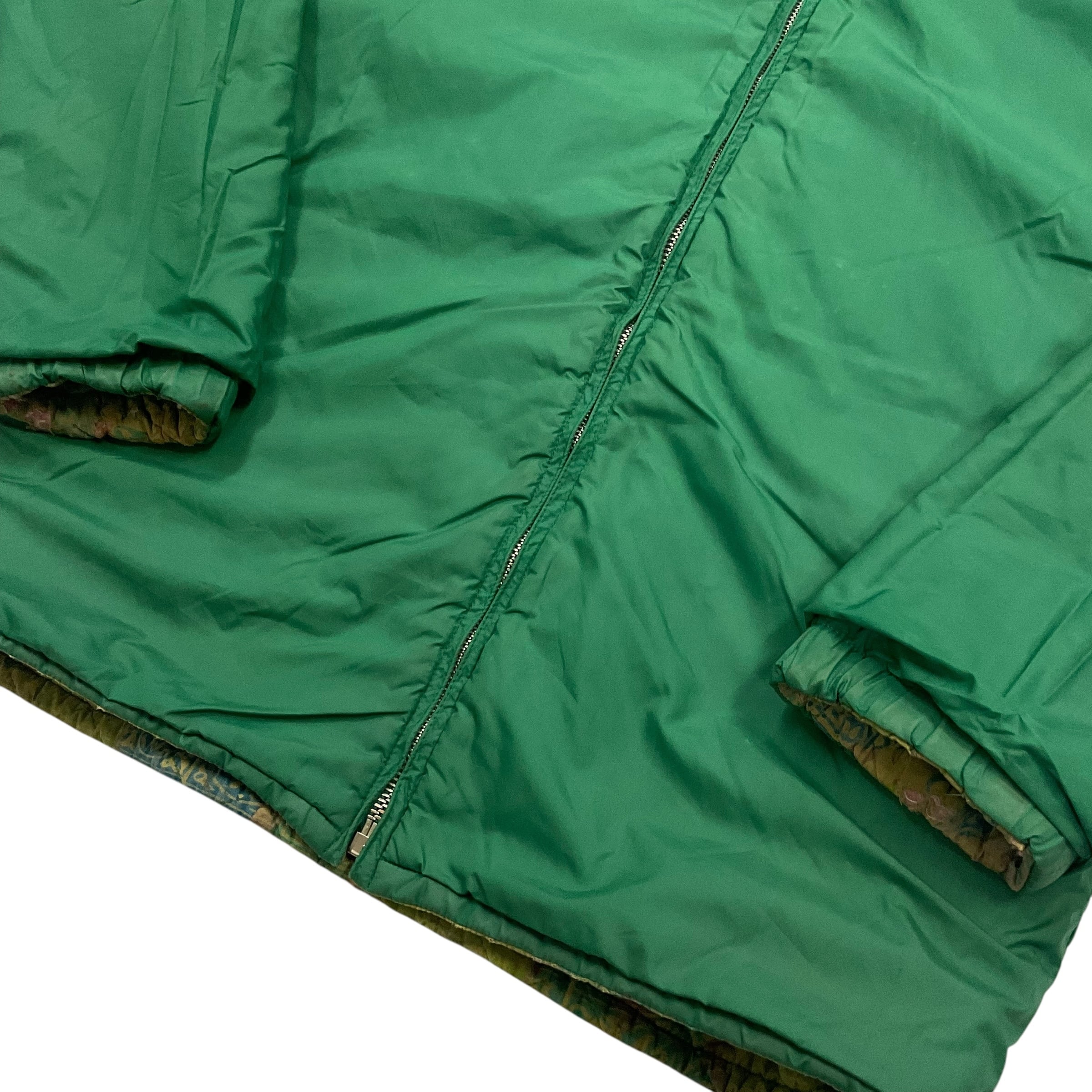 A面は緑ベースの派手な総柄で