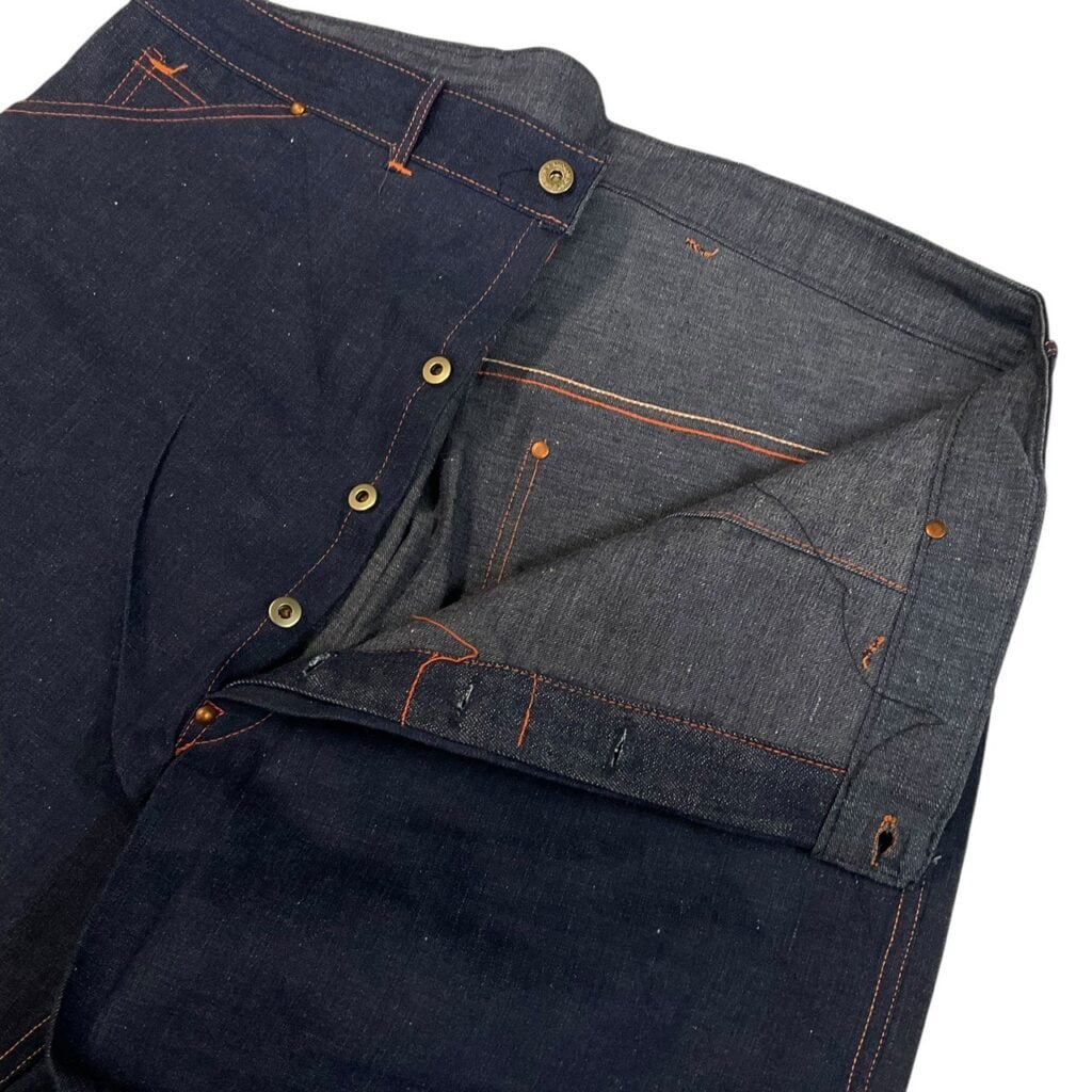 ダブルステッチにボタンフライは4つと