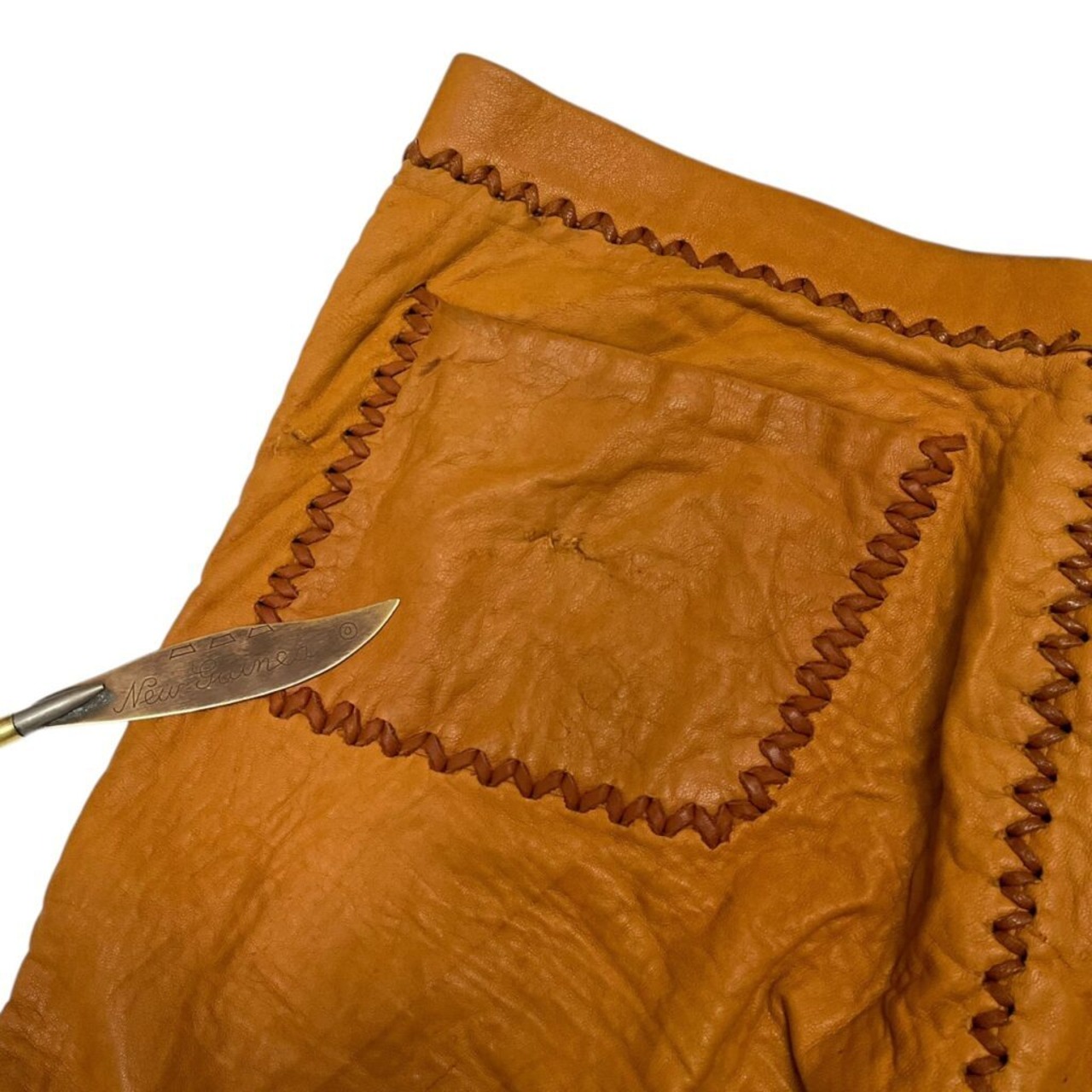 ちゃんとレザーステッチが手作業、、