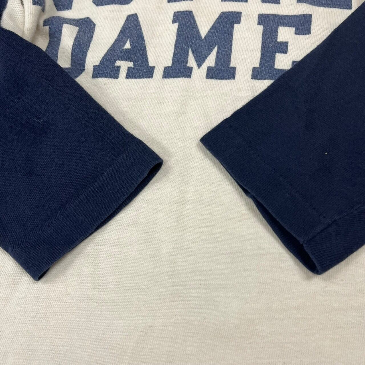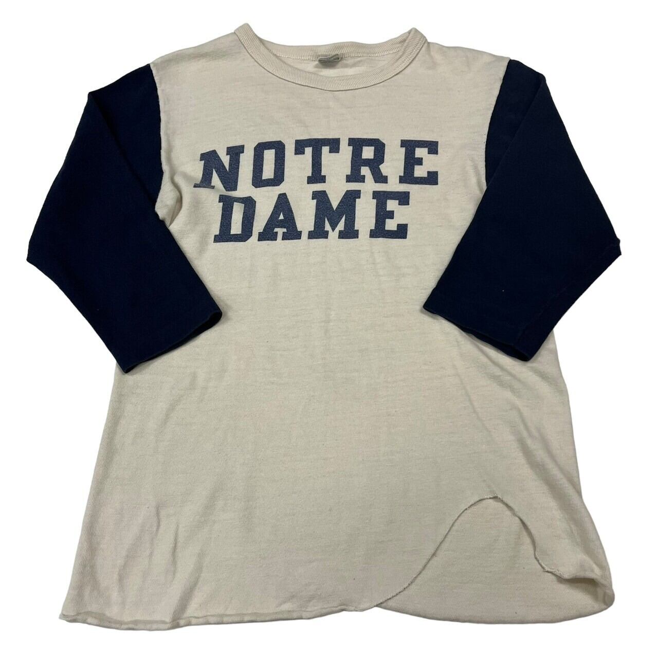 バータグ装備、染み込みノートルダムのベースボールTee。
