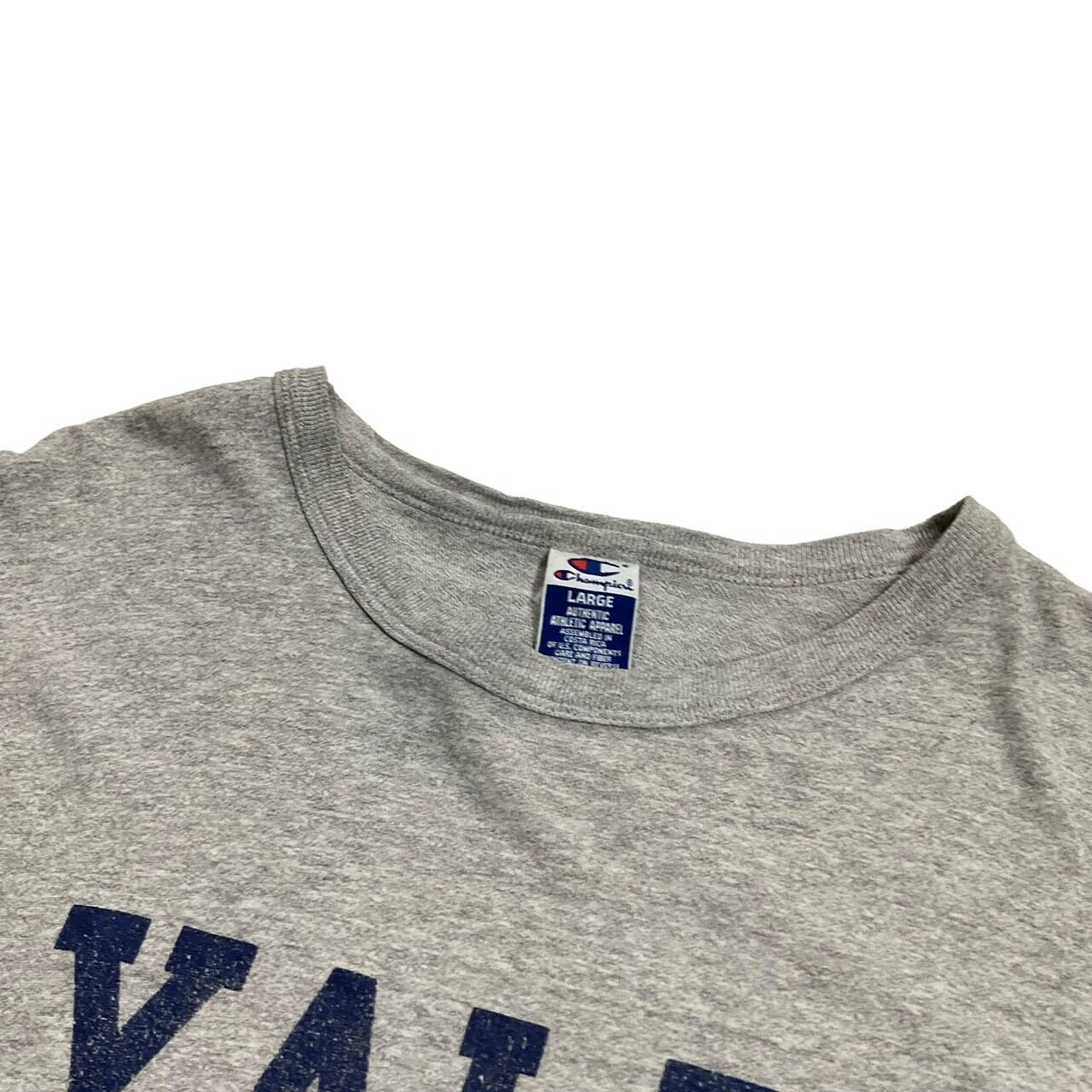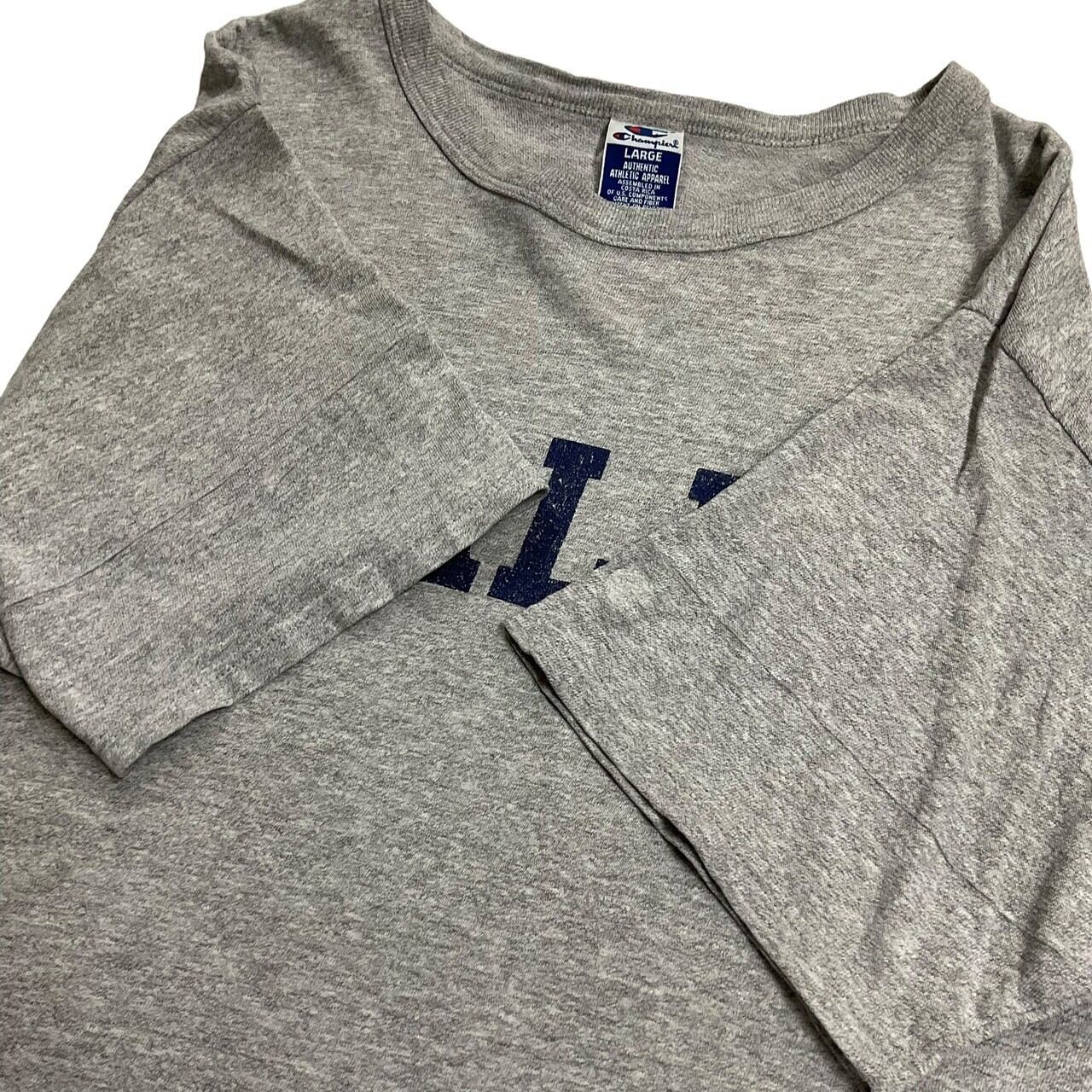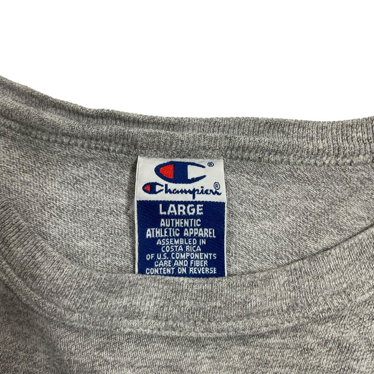 杢グレーでChampionの青タグ。