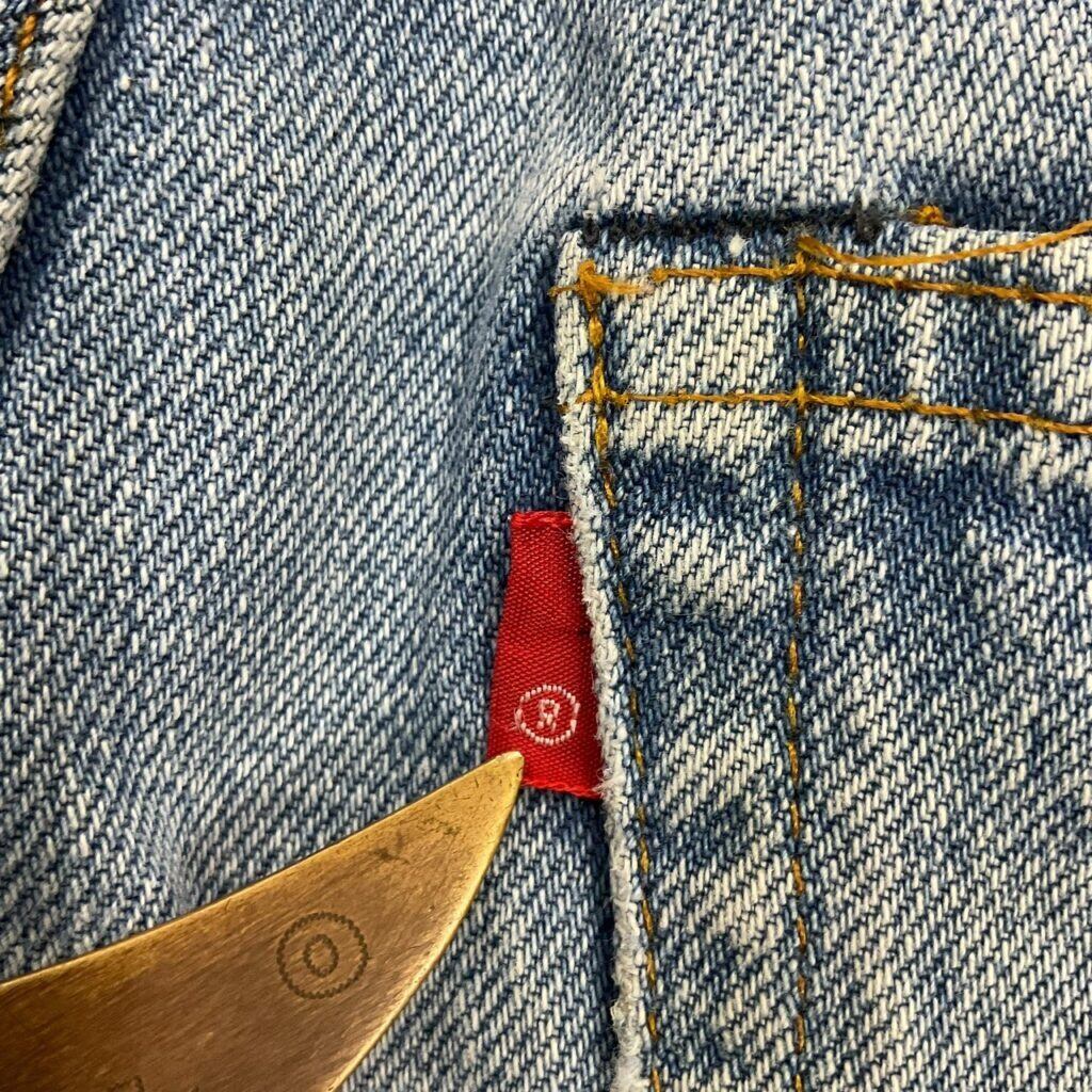 トップボタン裏6、バックポケット裏チェーンステッチ。