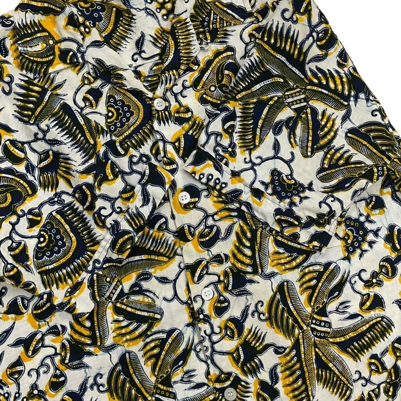 個人的に推したい、バティック柄のオープンカラーシャツ。
