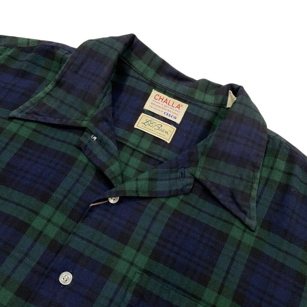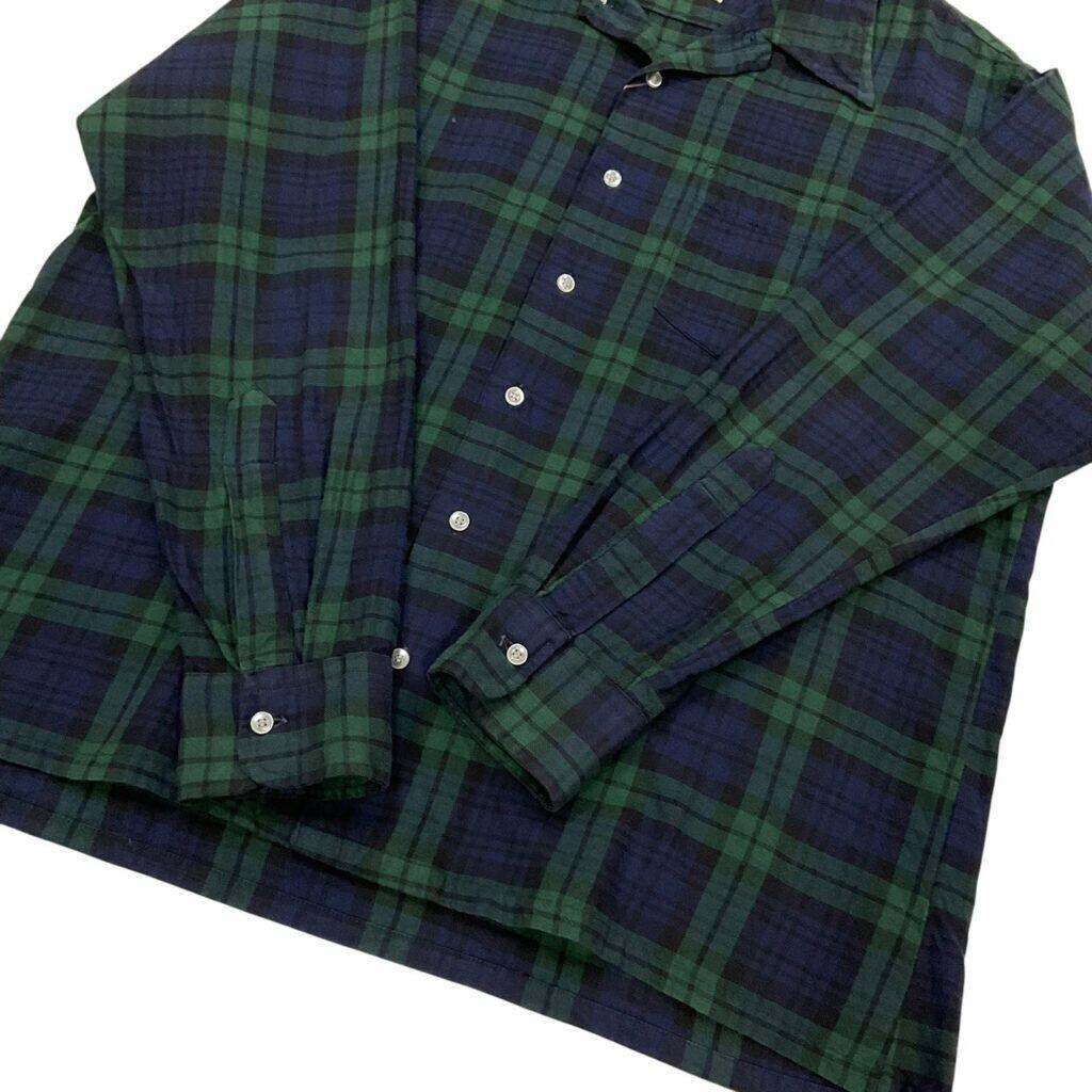 クラシックなブラックウォッチパターンのオープンカラーシャツ。